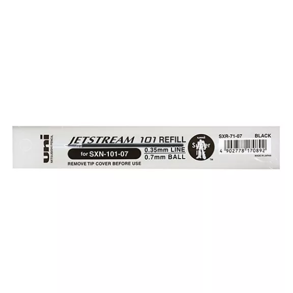 Tollbetét az Uni Jetstream SXN-101 tollakhoz. Lágyan ír és azonnal szárad ezért balkezeseknek is kifejezetten ajánljuk. Hegy: Rozsdamentes acél. Golyó: 0,7mm átmérőjű. Vonalvastagság: kb. 0,35mm.Fekete.
