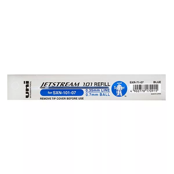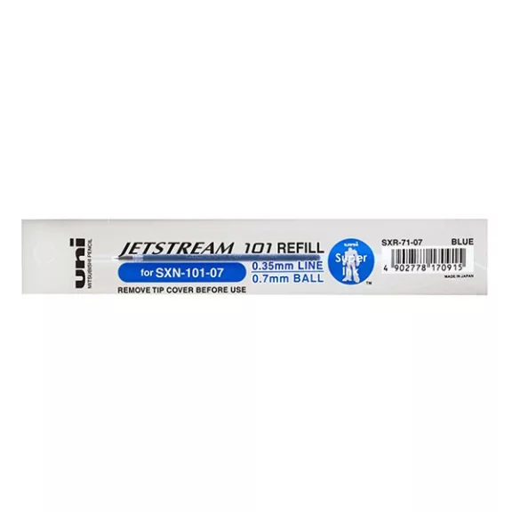 Tollbetét az Uni Jetstream SXN-101 tollakhoz. Lágyan ír és azonnal szárad ezért balkezeseknek is kifejezetten ajánljuk. Hegy: Rozsdamentes acél. Golyó: 0,7mm átmérőjű. Vonalvastagság: kb. 0,35mm. Kék.