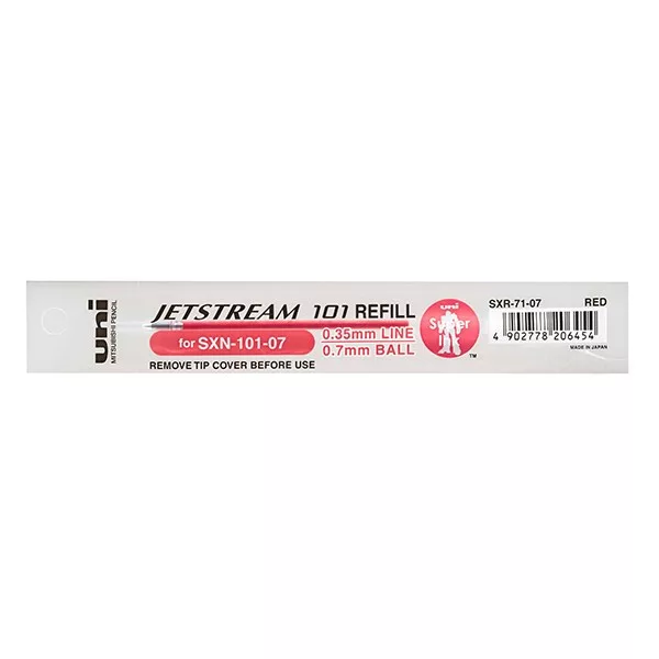 Tollbetét az Uni Jetstream SXN-101 tollakhoz. Lágyan ír és azonnal szárad ezért balkezeseknek is kifejezetten ajánljuk. Hegy: Rozsdamentes acél. Golyó: 0,7mm átmérőjű. Vonalvastagság: kb. 0,35mm. Piros.