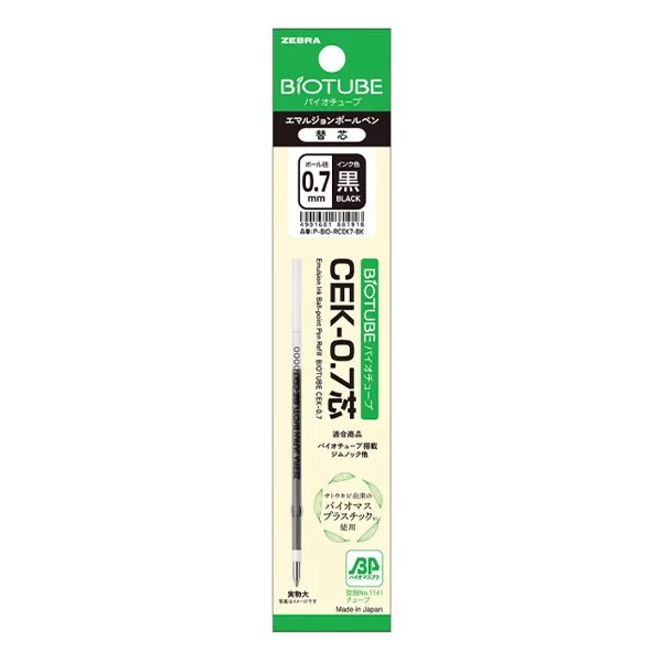A tollbetét biomassza műanyagból készült, amely megkapta a (Japán Biomass Plastic) minősítést. A környezetbarát betétek 73%-kal csökkentik a CO2 kibocsátást.. Emulziós tinta technológia. Vonalvastagsága 0.24 mm.Golyóátmérő:0,7 mm. Írászín: fekete