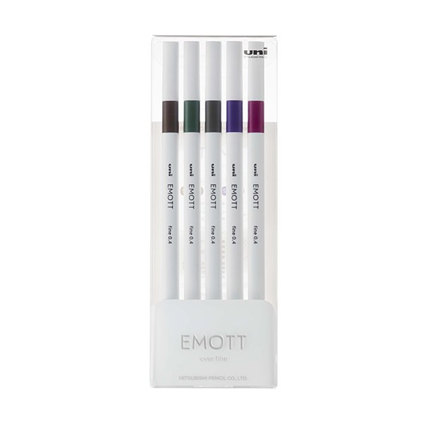 Tűfilc UNI EMOTT 5 darabos 0,4mm (sötétbarna, khaki,  szürke, lila, ametiszt)