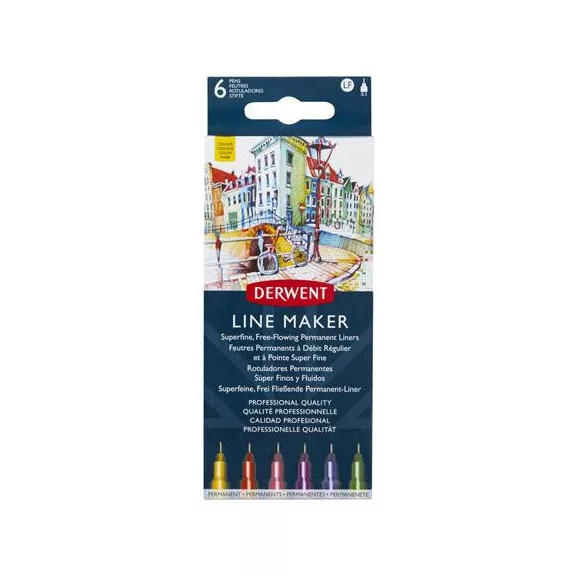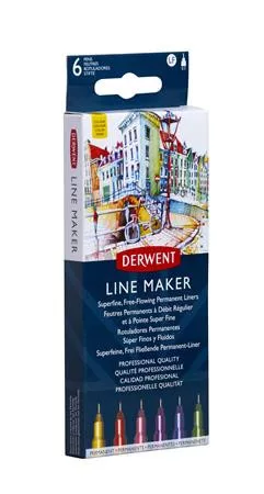 Tűfilc készlet, 0,3 mm, DERWENT "Line Marker", 6 különböző szín