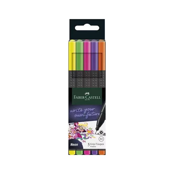 Tűfilc készlet, 0,4 mm, FABER-CASTELL "Grip", 5 különböző neon szín