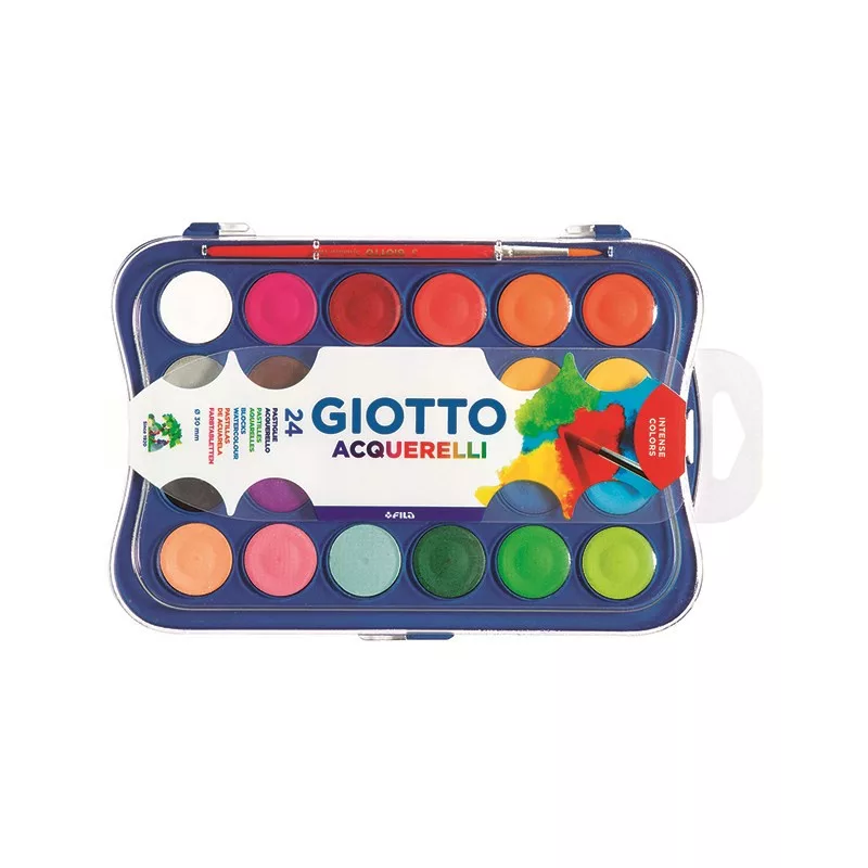24 színű vízfesték. Műanyag tok papír dobozban. Gomb mérete: 30mm Élénk, gazdag színvilág. Magas fedőképesség. A készlet szintetikus ecsettel és festőpalettával ellátva.