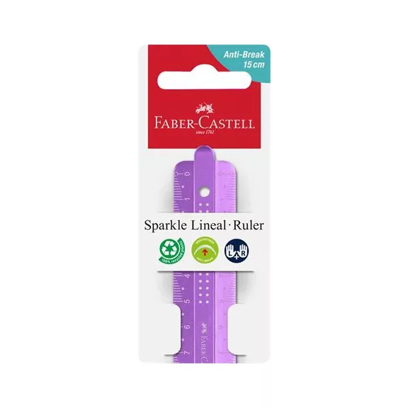 Vonalzó, műanyag, törhetetlen, 15 cm, FABER-CASTELL "Sparkle", vegyes színek