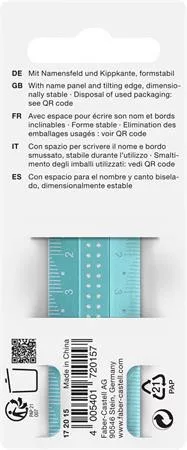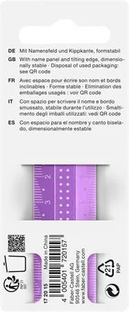 Flexibilis 15 cm-es Sparkle vonalzó! -fényes csillogó optika -extra skálázás bal- és jobbkezesek számára -névpanellel ellátott -100%-ban újrahasznosított műanyag -kenődésmentes dönthető élek a vonalzó emeléséhez -tiszta aláhúzás a sima éleknek köszönhetően -vegyes színben, a szín nem választható (óceánkék, lila,rózsaszín) Gyártó/első EU forgalmazó elérhetősége: Eberhard Faber Vertrieb GmbH Germany, 90546 Stein Nürnberger str.2. info@eberhardfaber.de www.eberhardfaber.com