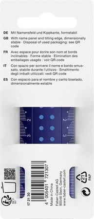 Flexibilis 30 cm-es Pöttyös vonalzó! -fényes csillogó optika -extra skálázás bal- és jobbkezesek számára -névpanellel ellátott -100%-ban újrahasznosított műanyag -kenődésmentes dönthető élek a vonalzó emeléséhez -tiszta aláhúzás a sima éleknek köszönhetően -vegyes színben, a szín nem választható (óceánkék, lila,rózsaszín) Gyártó/első EU forgalmazó elérhetősége: Eberhard Faber Vertrieb GmbH Germany, 90546 Stein Nürnberger str.2. info@eberhardfaber.de www.eberhardfaber.com