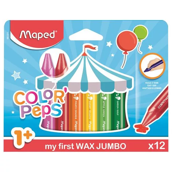 Zsírkréta, vastag, MAPED "Color`Peps MAXI Wax", 12 különböző szín