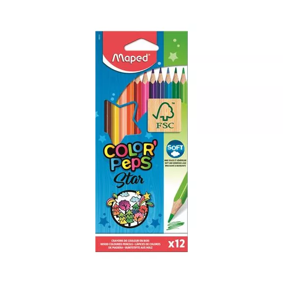 Színes ceruza készlet, háromszögletű, MAPED "Color'Peps Star", 12 különböző szín
