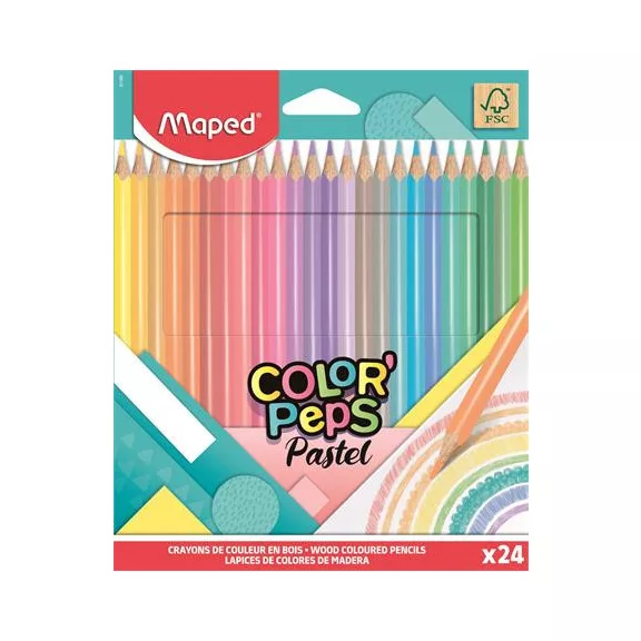 Színes ceruza készlet, háromszögletű, MAPED "Color'Peps Pastel", 24 különböző pasztell szín