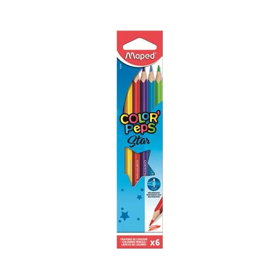 Színes ceruza készlet, háromszögletű, MAPED "Color`Peps Star", 6 különböző szín