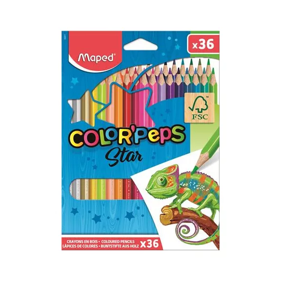 Színes ceruza készlet, háromszögletű, MAPED "Color`Peps Star", 36 különböző szín