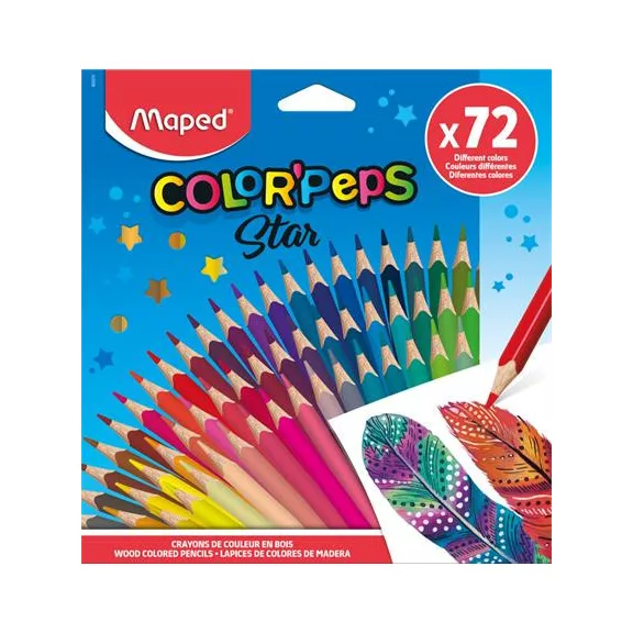 Színes ceruza készlet, háromszögletű, MAPED "Color`Peps Star", 72 különböző szín