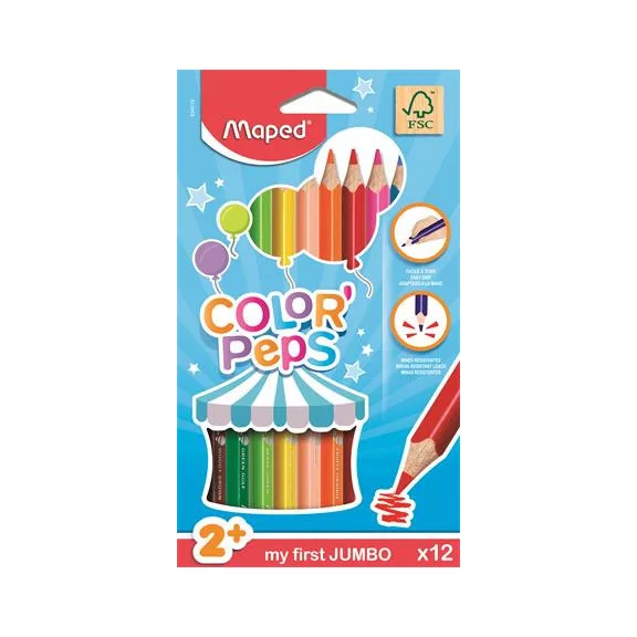 Színes ceruza készlet, háromszögletű, vastag, MAPED "Jumbo", 12 különböző szín