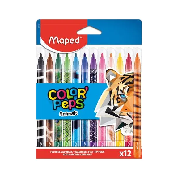 Filctoll készlet, 2,8 mm, kimosható, MAPED "Color`Peps Animals", 12 különböző szín