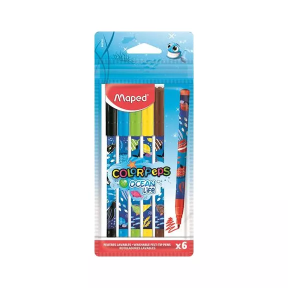Filctoll készlet, 2 mm, kimosható, MAPED "Color'Peps Ocean Life", 6 különböző szín