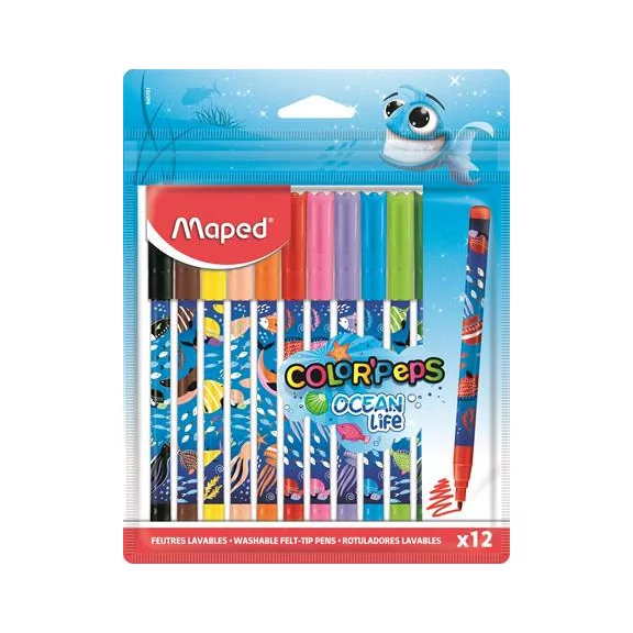 Filctoll készlet, 2 mm, kimosható, MAPED "Color'Peps Ocean Life", 12 különböző szín