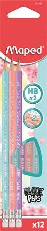 Grafitceruza radírral, HB, háromszögletű, MAPED "Black'Peps Pastel", vegyes pasztell színek