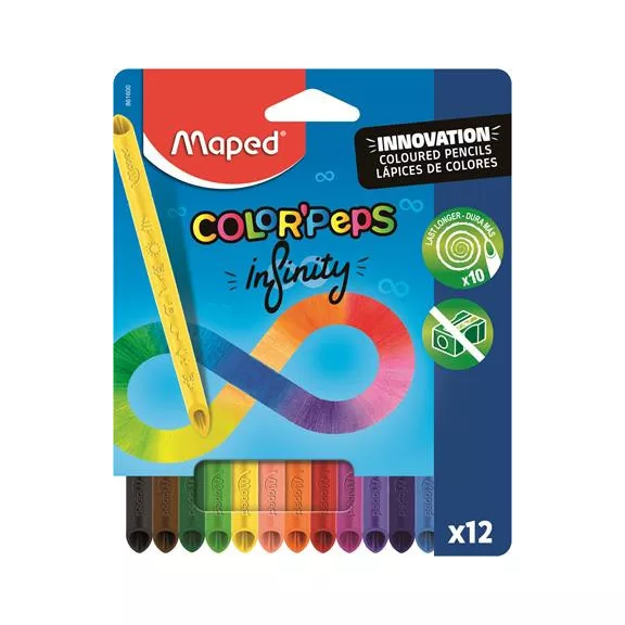 INFINITY: a végtelen színezés öröme! Innovatív színes ceruzák, amelyek akár 10-szer tovább tartanak, mint a hagyományos társaik. - eredeti és szabadalmaztatott kialakítás, mely lehetővé teszi, hogy a gyerekek mindkét oldalával színezzenek - 100%-ban színesceruza hegy, mely 100%-ban felhasználható, teljesen hulladékmentes használatot garantál - nem kell hegyezni, kialakításának köszönhetően színezés közben hegyeződik - háromszög alakú ceruzatest a kényelmes fogás érdekében - élénk, ragyogó színek Gyártó/első EU forgalmazó elérhetősége: MAPED SAS 530 route de Pringy - 74370 Argonay sophie.souillard@maped.fr www.maped.com