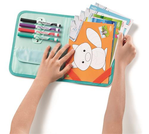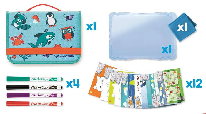 Kreatív készségfejlesztő tábla, átlátszó, törölhető, utazótáskával, MAPED CREATIV, "Travel Board", állati móka