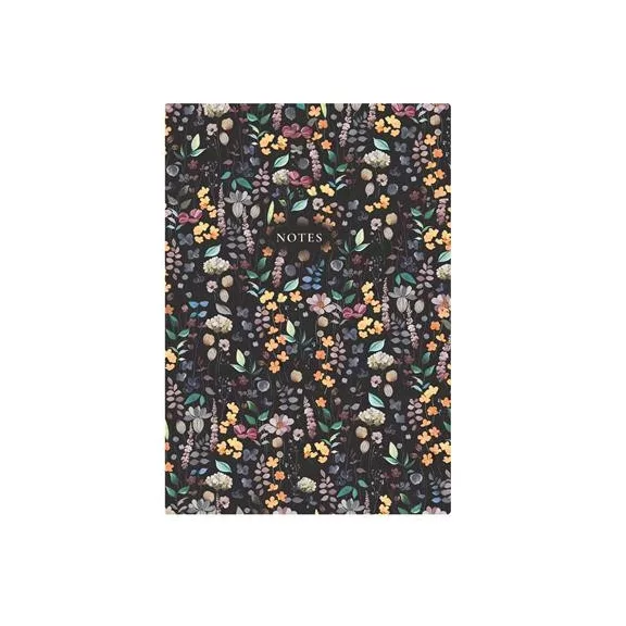 Jegyzetfüzet, A5, vonalas, 96 lap, TOPTIMER "Notes", fekete virágos
