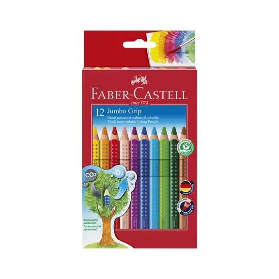 Színes ceruza készlet, háromszögletű, FABER-CASTELL "Jumbo Grip", 12 különböző szín