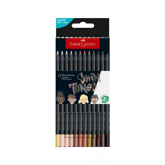 Színes ceruza készlet, háromszögletű, FABER-CASTELL "Black Edition", 12 különböző bőrszín