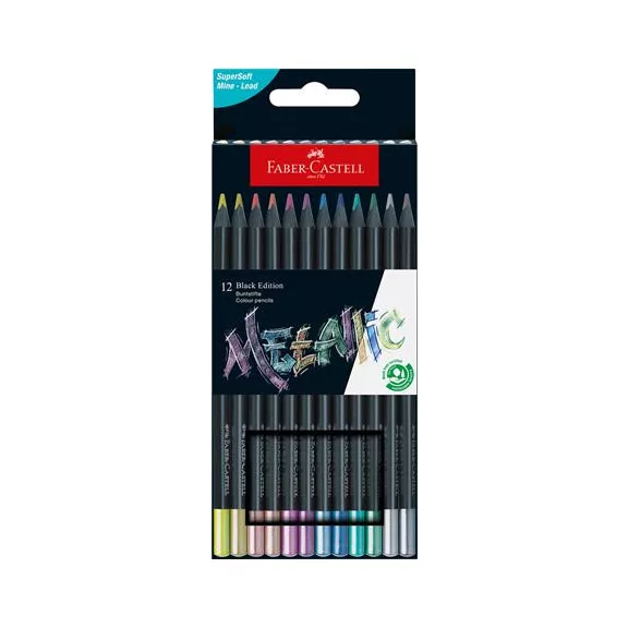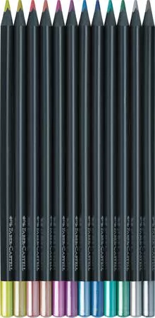 Színes ceruza készlet, háromszögletű, FABER-CASTELL "Black Edition", 12 különböző metál szín