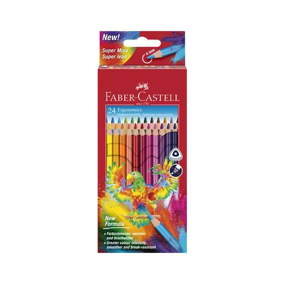 Színes ceruza készlet, háromszögletű, FABER-CASTELL "Papagáj", 24 különböző szín