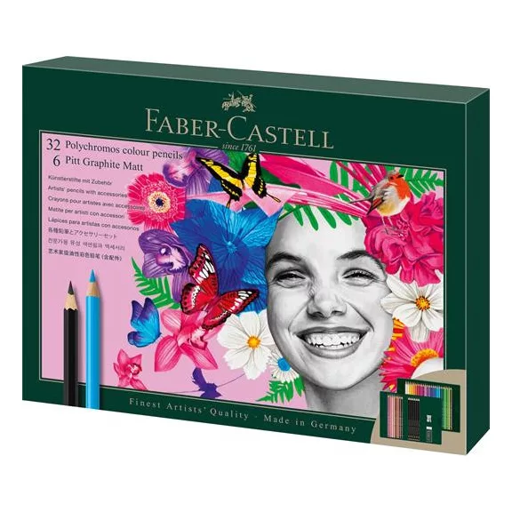 Színes- és grafitceruza készlet, FABER-CASTELL "Polychromos & Pitt Graphite Matt" , 40 db-os szett