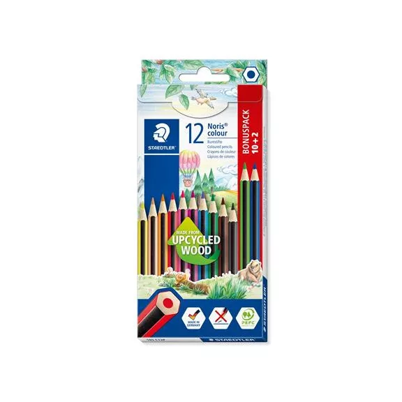 Színes ceruza készlet, hatszögletű, STAEDTLER "Noris Colour 185", 10+2 különböző szín