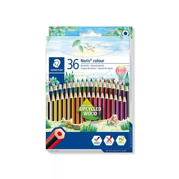 Színes ceruza készlet, hatszögletű, STAEDTLER "Noris Colour 185", 36 különböző szín