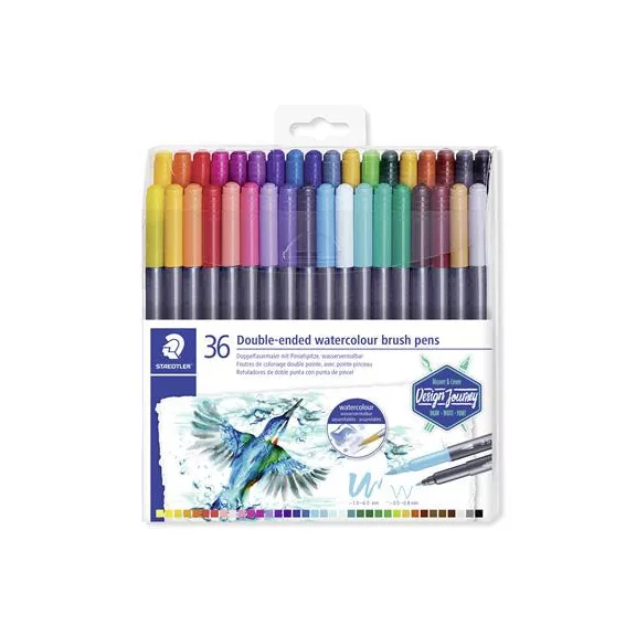 Ecsetirón készlet, 0,5-0,8/1,0-6,0 mm, kétvégű, STAEDTLER "3001", 36 szín