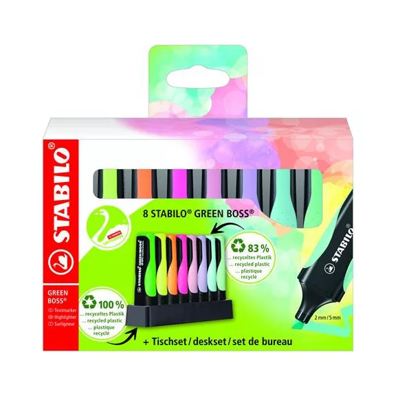Szövegkiemelő készlet, 2-5 mm, STABILO "Green Boss Pastel", 8 db-os asztali készlet