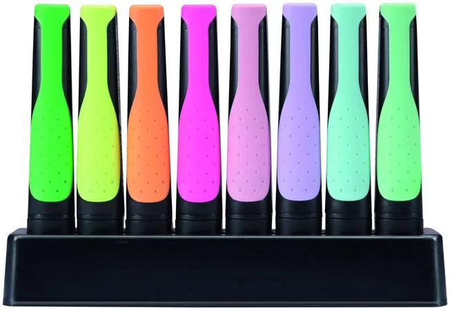 prémium minőségű szövegkiemelők műanyag tartóban vízbázisú, környezetbarát tintával töltve íráshossz: 375 m 83%-ban újrahasznosított műanyagok felhasználásával készült egyenletes, tiszta adagolás hosszú nyitva tarthatósági idő: 4 órán át nem szárad ki kupak nélkük vonalvastagság: 2-5 mm Gyártó/első EU forgalmazó elérhetősége: STABILO international GmbH Magyarországi Fióktelepe 1033 Budapest, Szőlőkert köz 7/a. info.hu@stabilo.com www.stabilo.hu