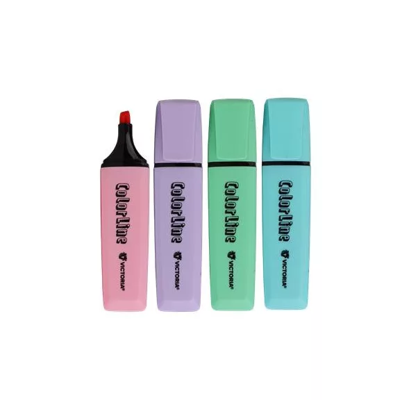 Szövegkiemelő készlet, 1-5 mm, VICTORIA OFFICE, "ColorLine", 4 különböző pasztell szín
