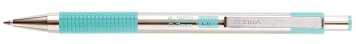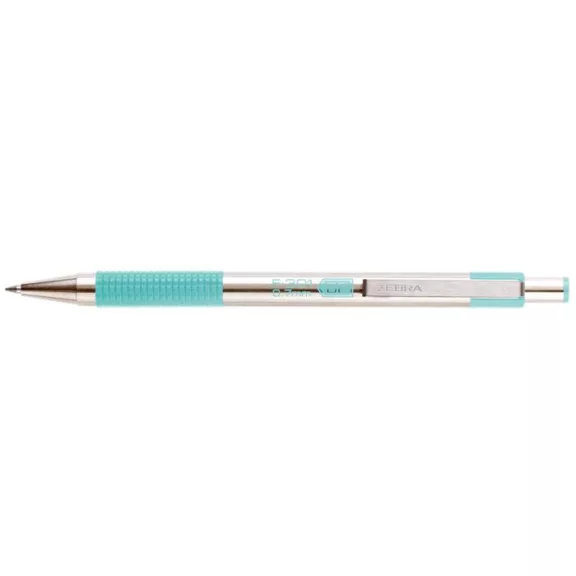 Golyóstoll, 0,24 mm, nyomógombos, rozsdamentes acél, pasztellzöld tolltest, ZEBRA "F-301", kék