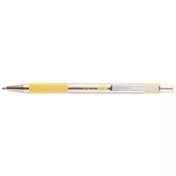 Golyóstoll, 0,24 mm, nyomógombos, rozsdamentes acél, pasztellsárga tolltest, ZEBRA "F-301", kék