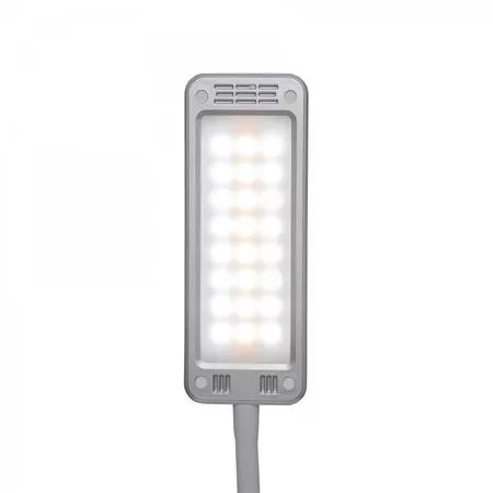 A színhőmérséklet és a fényerősség napszaktól és igényektől függően 3 fokozatban állítható. Erős fényigényű területet megfelelően világít meg, extra takarékos, 80%-kal alacsonyabb energiaszükséglet a hagyományos izzókhoz képest. Helytakarékos, könnyen kezelhető, stabil műanyag talpa nehezékként szolgáló súlybetéttel felszerelt. A fém kar gumírozott felülettel ellátott, a műanyag lámpafej forgatható és billenthető. Biztonságos és környezetbarát, újrahasznosítható csomagolás. - fényforrás: beépített LED panel, 24 LED-del (8 meleg fehér és 16 nappali fehér) - a LED izzók nem cserélhetőek a lámpatestben - átlagos energiafogyasztás: 6 kWh/1000 h - fényerősség: 320 lumen - színhőmérséklet: állítható (3 000 K, 5 000 K, 6 500 K) - LED átlagos élettartama: 20 000 óra - flexibilis, állítható karral - karhossz: 35,5 cm - átlagos munkamagasság: kb 36-38 cm - fej méret: 16 x 6 cm - talp méret: 16,5 x 10,6 cm - tömeg: 685 g - 220/240 V-os hálózatról működik - érintőkapcsoló - szín: ezüst - garancia: 2 év - energiahatékonysági besorolás: D (A-G skálán) Gyártó/első EU forgalmazó elérhetősége: Jakob Maul GmbH Jakob-Maul-Str. 17, 64732 Bad König, Germany contact@maul.de www.maul.de