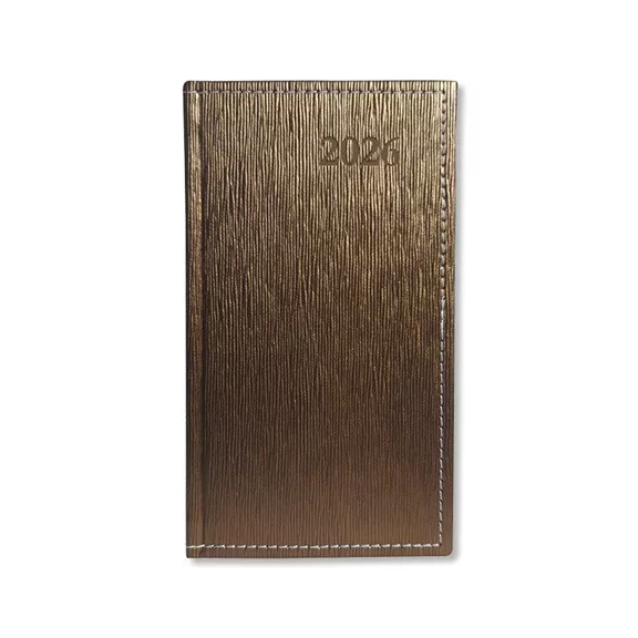 A Period Lamé álló zsebnaptár a precíz időtervezés mobil változata. A körbevarrott műbőr borító tartós és elegáns, a cérnafűzött kötés, valamint a sarokperforált naptárrész hosszú távon is kényelmes használatot biztosít. Heti beosztása 8–17 óráig, órás bontásban segíti a munkanapok hatékony szervezését.