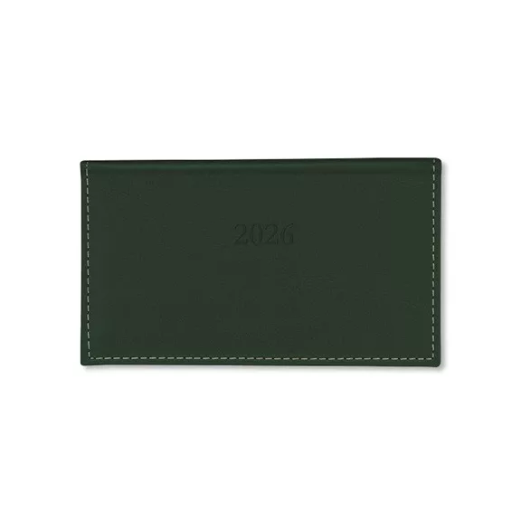 A Period Chamois fekvő zsebnaptár azok számára ideális, akik kompakt méretben keresnek átlátható heti tervezőt. A fekvő kialakítás kényelmes írási felületet kínál, a heti beosztású, 8–17 órás felosztás pedig egyszerűvé teszi a mindennapi találkozók és feladatok rendszerezését. A körbevarrott műbőr borító elegáns és tartós, míg a cérnafűzött kötés és a sarokperforáció a kényelmes, megbízható mindennapi használatot szolgálják.