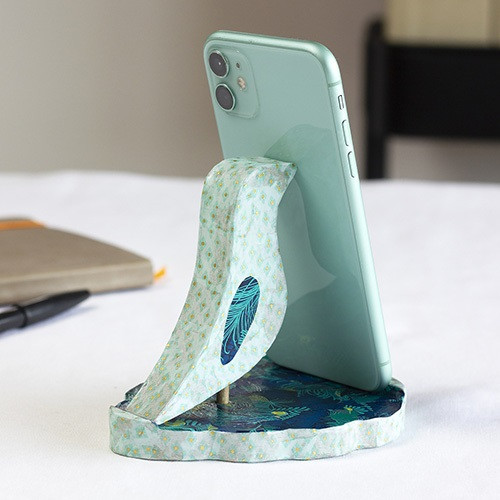 TARTALOM: 1 db 13x11x12 cm-es papírmasé telefontartó, 2 db 30x40 cm-es Décopatch papírlap, 1 db 1,5x16,5 cm-es ecset és 1 db 45 ml-es ragasztó.