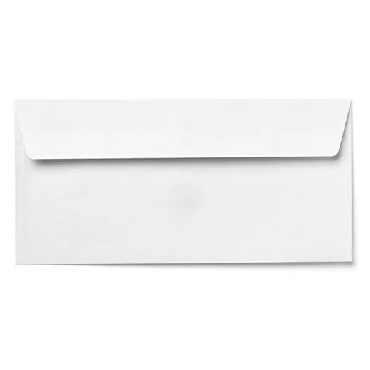 Csekk méretű, fehér, bélésnyomott, ablakos boríték, szilikonos záródású.