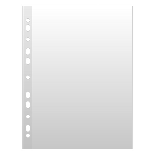 Víztiszta, univerzális, 11 lefűzőlyukkal rendelkező lefűzhető genoterm dokumentumok gyűrűskönyvekben, iratrendezőkben történő, lyukasztás nélküli tárolására.