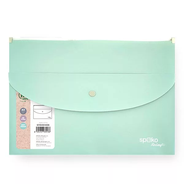Irattasak SPOKO ReLeaf PP A/5 cipzáras és DL patentos SoftTouch menta zöld