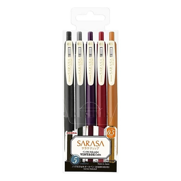Zseléstoll készlet ZEBRA Sarasa Clip Vintage nyomógombos 0,5 mm 5 darabos metál színek