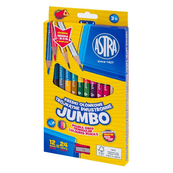 24 színű jumbo kétvégű színes ceruza készlet, ajándék hegyezővel.