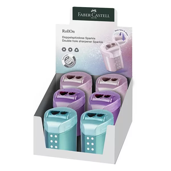 Hegyező FABER-CASTELL RollOn Sparkle 2 lyukú tartályos metál színekben