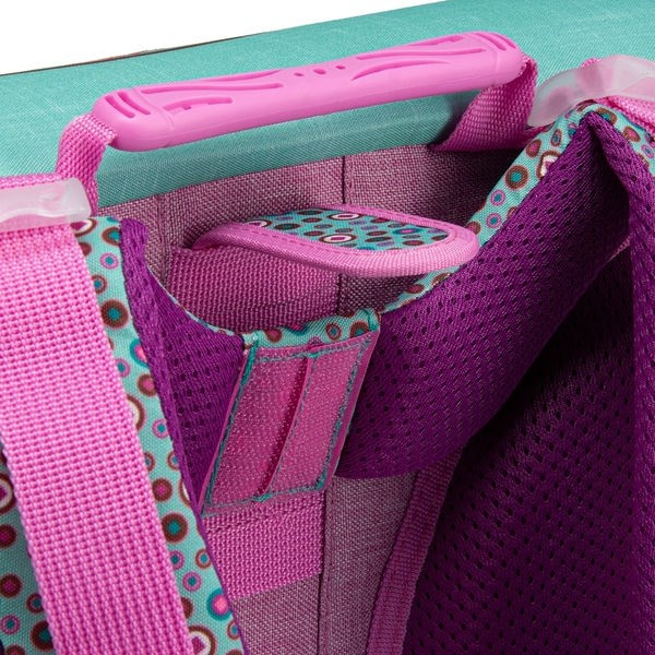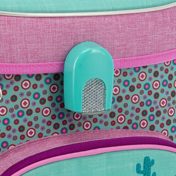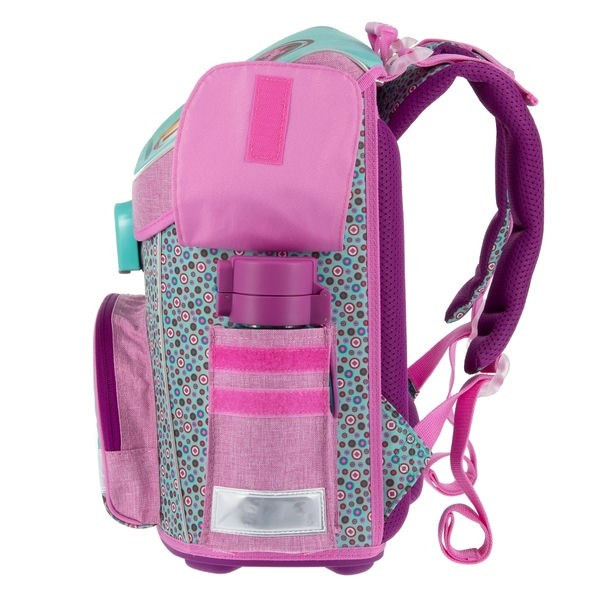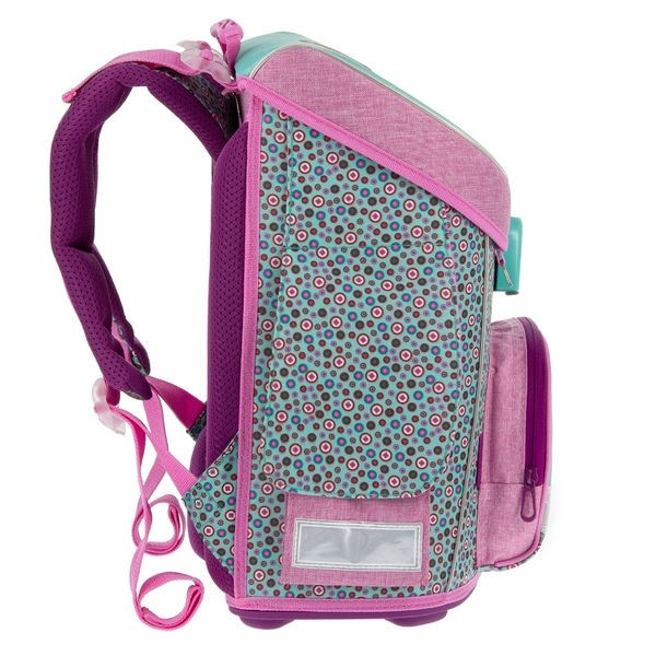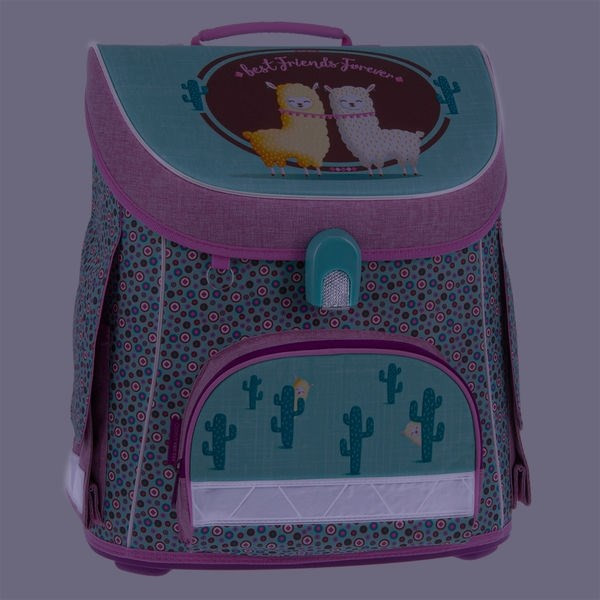 Hátizsák formájú iskolatáska. Könnyű súlyú, formatartó szerkezetű, vízlepergető anyagból. Gerinckímélő, vastagon párnázott, merevített, ergonómikus hátkiképzéssel. Puha, méretre állítható vállpántokkal és plusz állítható pántokkal, amelyekekkel szabályozható, hogy mennyire álljon feszesen a gyerek hátához simulva a táska. Alja tartós kemény műanyag. Nagy felületű fényvisszaverő elemekkel elől, oldalt és a vállpántokon. Felülről könnyen pakolható, teteje FIDLOCK mágneszárral záródik. Belsejében egy textil elválasztó elemmel, két nagy rekesszel. A táska tetején belül átlátszó műanyag órarendtartóval és órarenddel. Oldalán két zsebbel a kulacs részére, elején egy cipzáros zseb az uzsonnás doboz részére. Tetején műanyag fogantyúval. Mérete: 330x410x240 mm. Súlya: 1.1 kg. Táska űrtartalma: 18 l. Terhelhetőség: 12 kg. 2 év garancia.