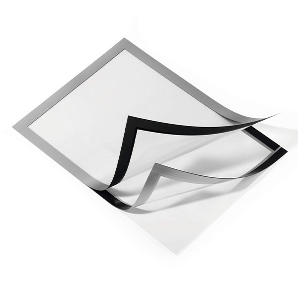 A4 formátumú öntapadó infokeret, iInformációk magas színvonalú és professzionális megjelenítése. A felhajtható mágneses keret gyors dokumentumcserét tesz lehetővé, segédeszközök nélkül egyszerűen felhelyezhető sima, teherbíró felületekre. Pl. üvegről visszaszedhető. A4 formátumú dokumentumokhoz, ideális lehet pl. helyiségek megjelölésére, eligazító információk vagy ajánlatok megjelenítésére. Üveg felületen két oldalról olvasható. A keret mindkét oldalról azonos megjelenésű, Álló és fekvő formátumban is használható. Ingyenesen letölthető, előre elkészített sablonok elérhetőek a www.duraprint.eu oldalon. Külső méret: 236 x 323 mm
